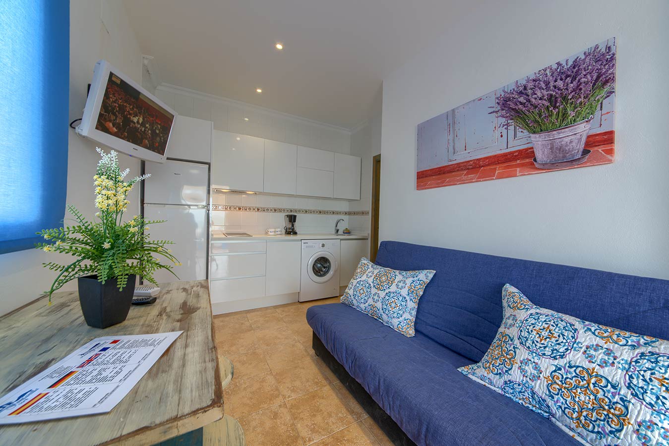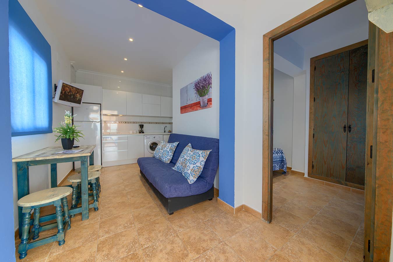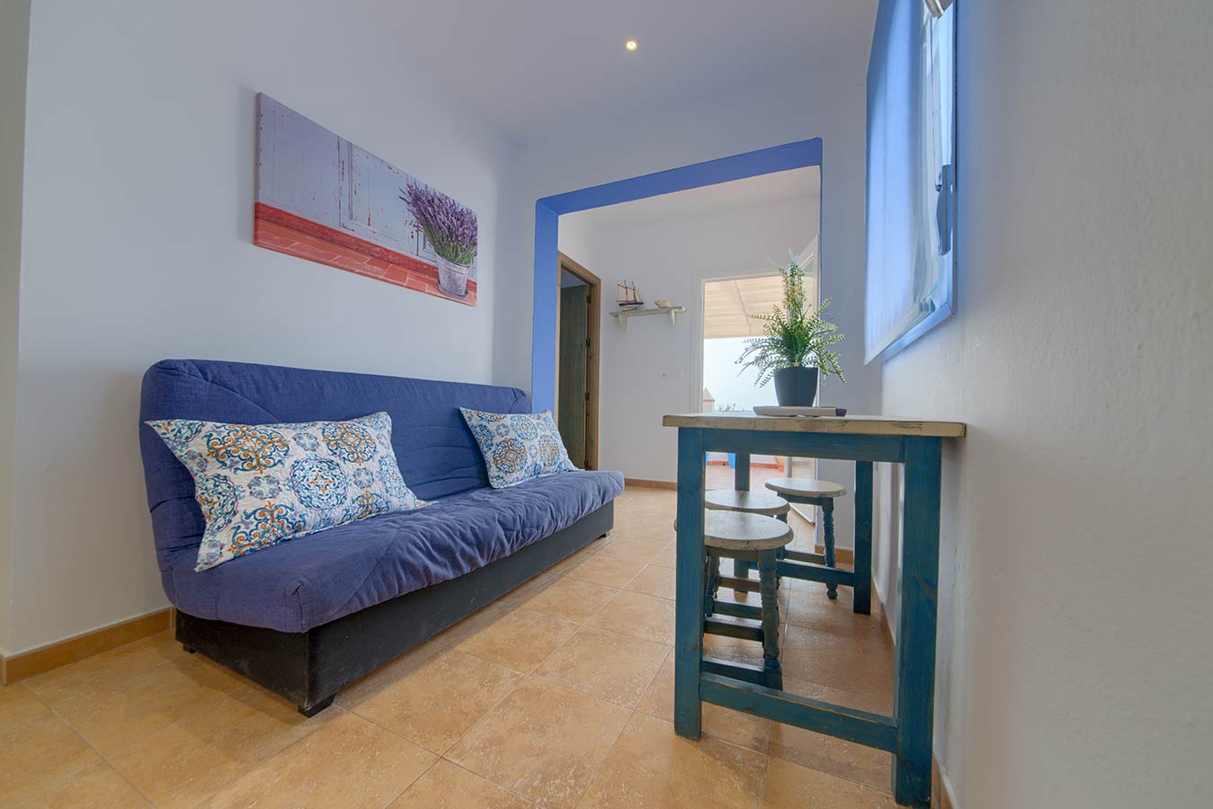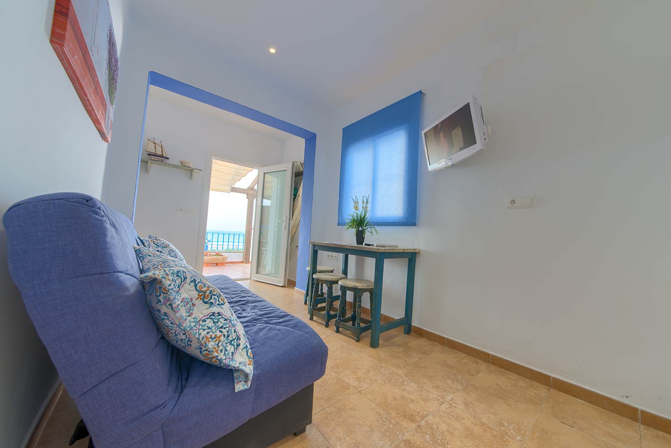 Bonito apartamento decorado con estilo ibicenco y marinero, situado a pie de playa de la Fontanilla a 10 minutos de Conil andando. Consta de una habitación con cama de matrimonio, cocina comedor con sofá-cama, tv, wifi gratuito, aire acondicionado, caja fuerte y baño con ducha. La cocina está totalmente equipada con frigorífico, lavadora, microondas y demás menaje del hogar.