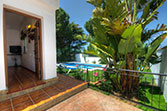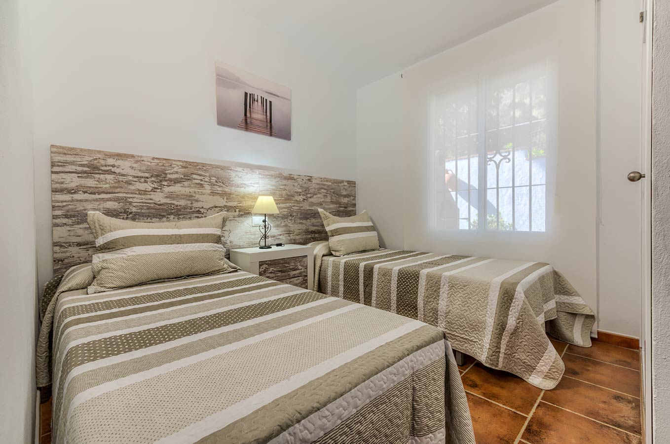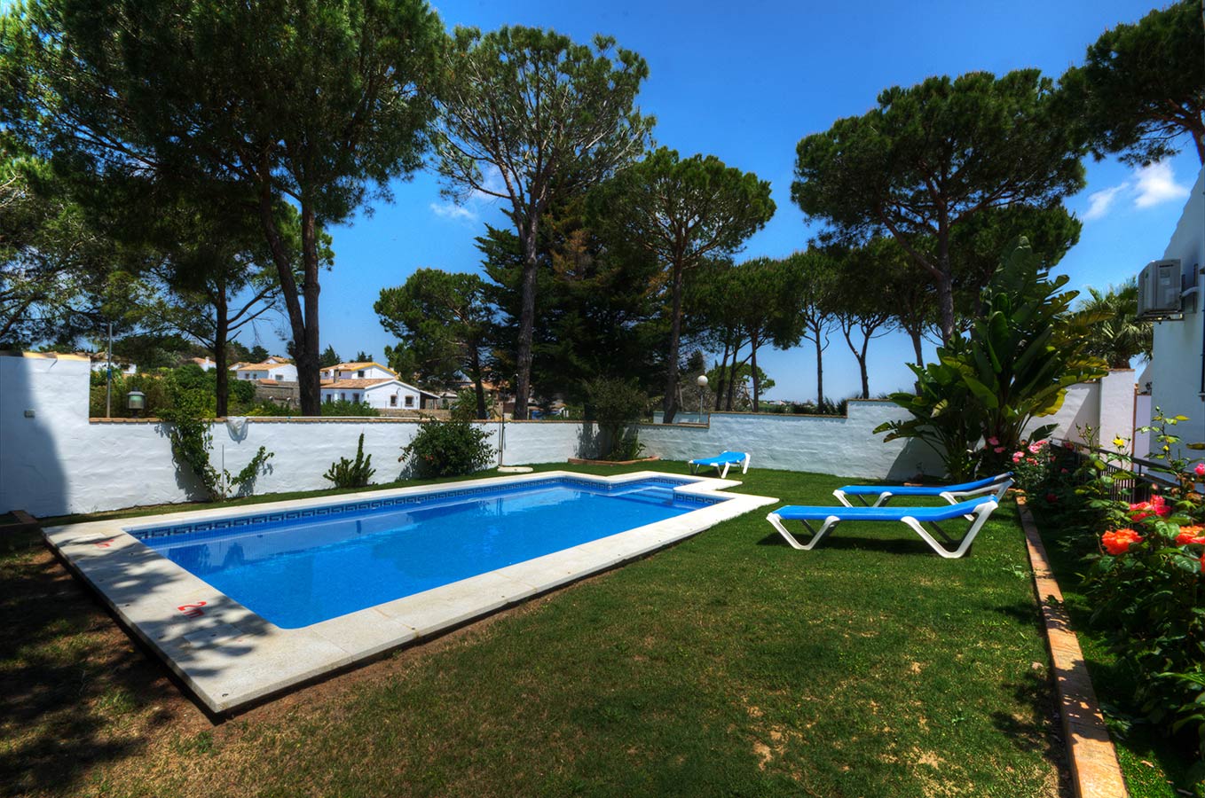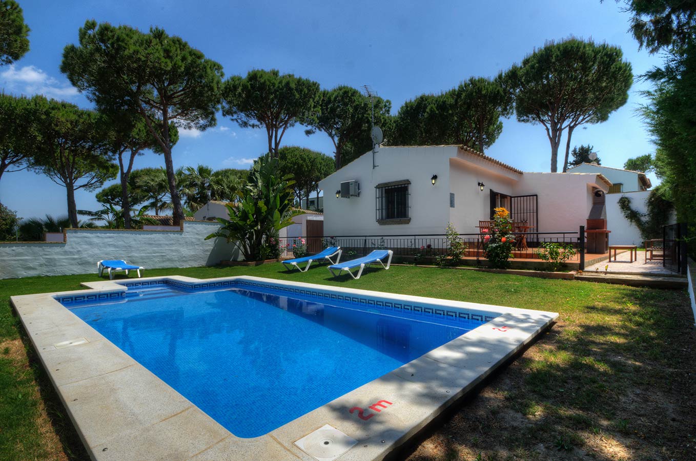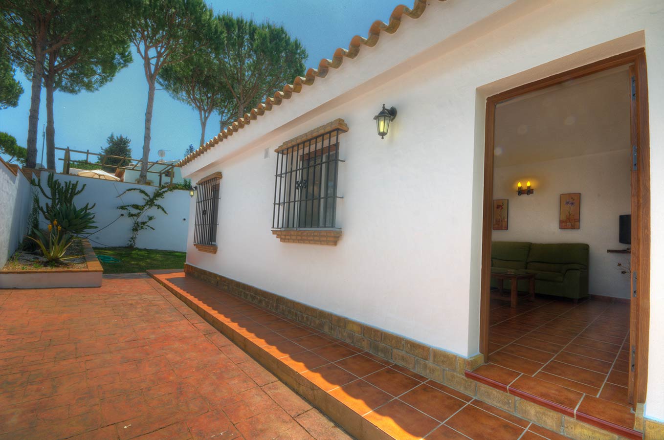 Esta casa cercada independiente forma parte de un conjunto de 5 casas en alquiler dentro de una parcela de 4.500 m2 de pinares, localizadas en la Fuente del Gallo a 2,5 kilómetros del pueblo y a tan sólo 800 metros de la playa y acantilados.