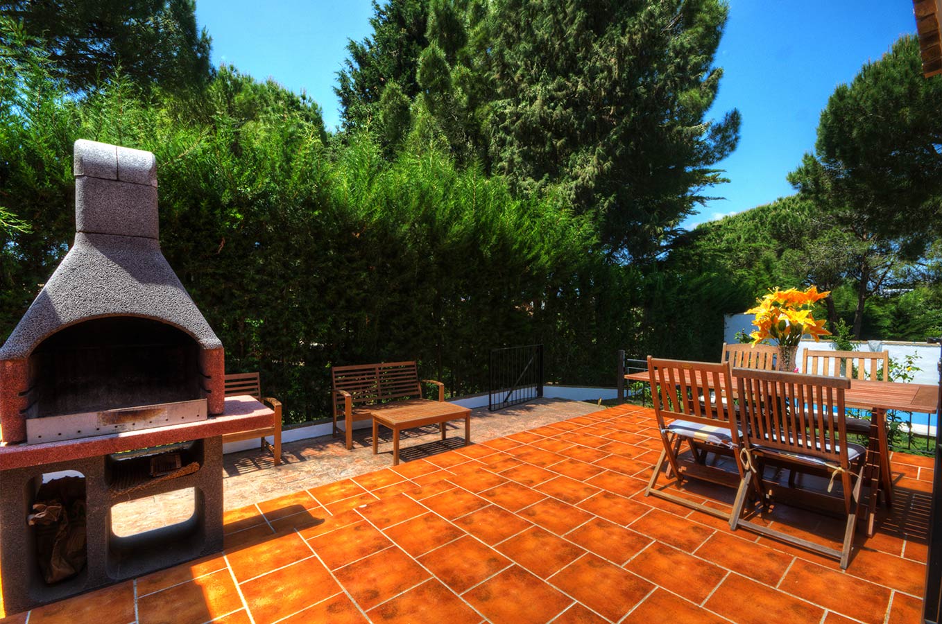 En el exterior podrán disfrutar de un porche con mobiliario de jardín, hamacas, barbacoa, amplias zonas ajardinadas, aparcamiento y piscina privada.