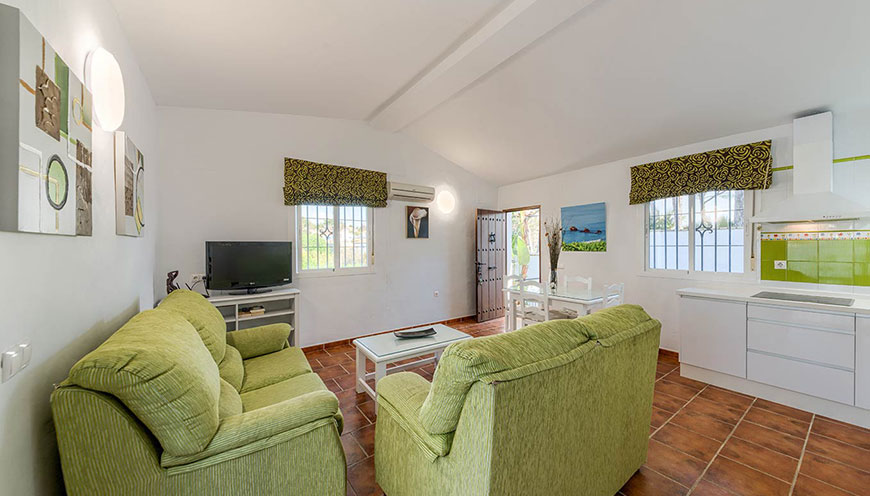 Cortijo de 80 m2 con capacidad para 4 personas, compuesto de 2 dormitorios, baño completo, salón comedor y cocina totalmente equipada. Dispone de wifi gratuito, aire acondicionado y tv por satélite.