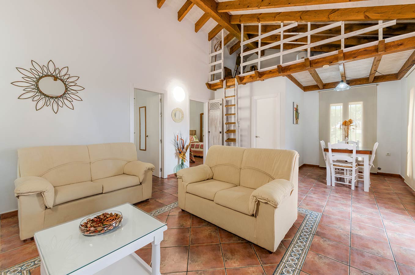 Cortijo de 75 m2, con capacidad para 4/5 personas, compuesto de 2 dormitorios, baño completo, salón comedor y cocina totalmente equipada. Dispone de wifi gratuito, aire acondicionado y tv por satélite.