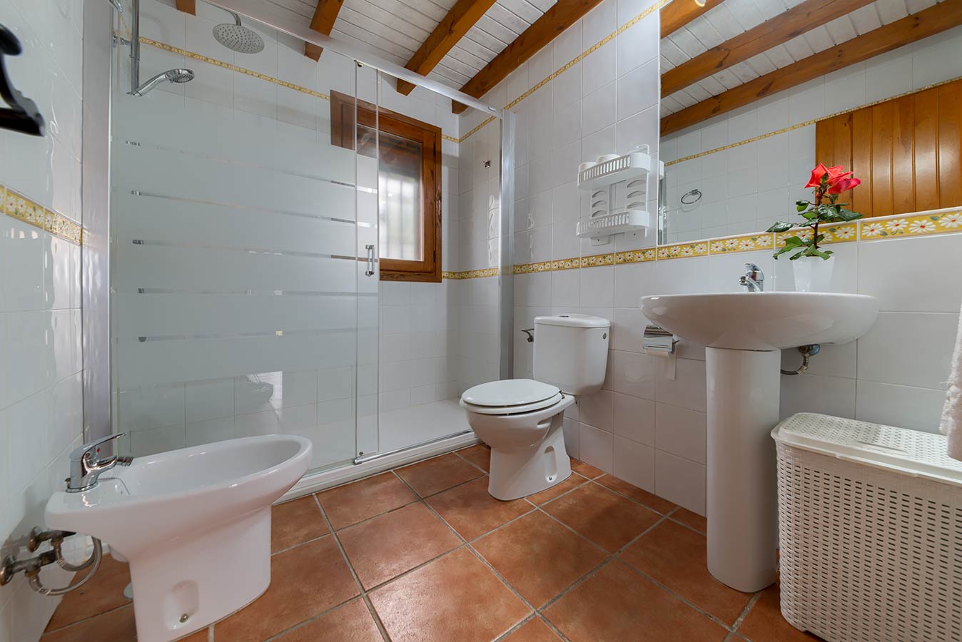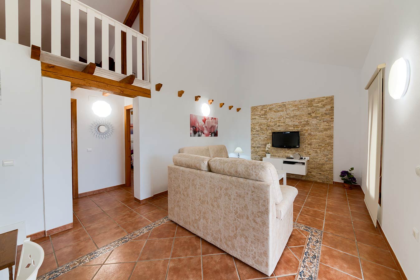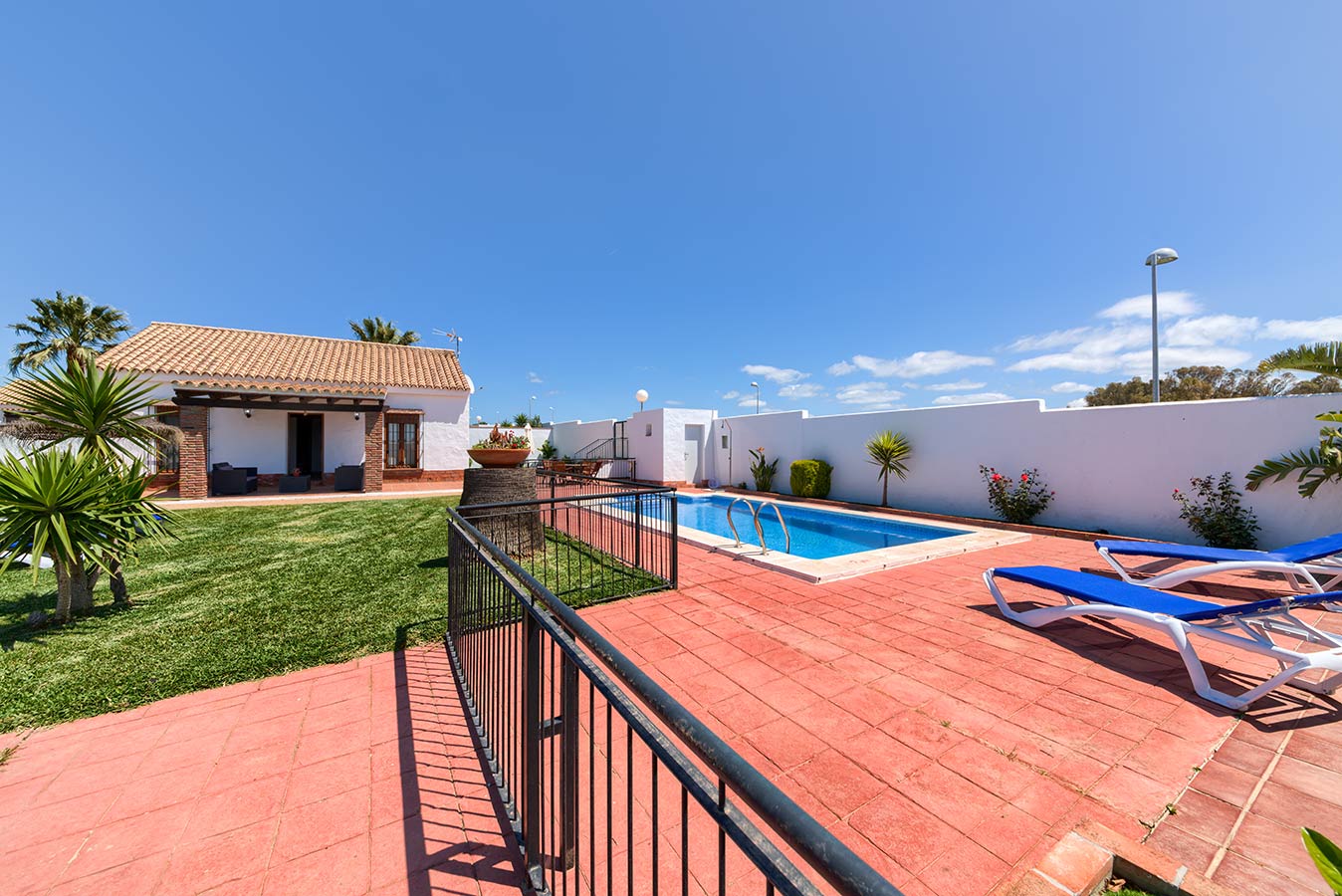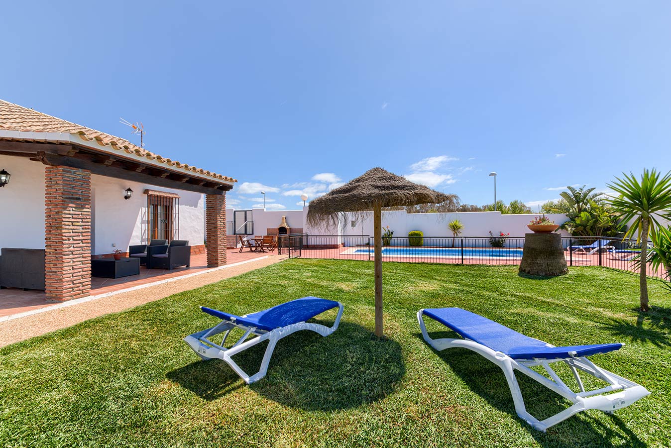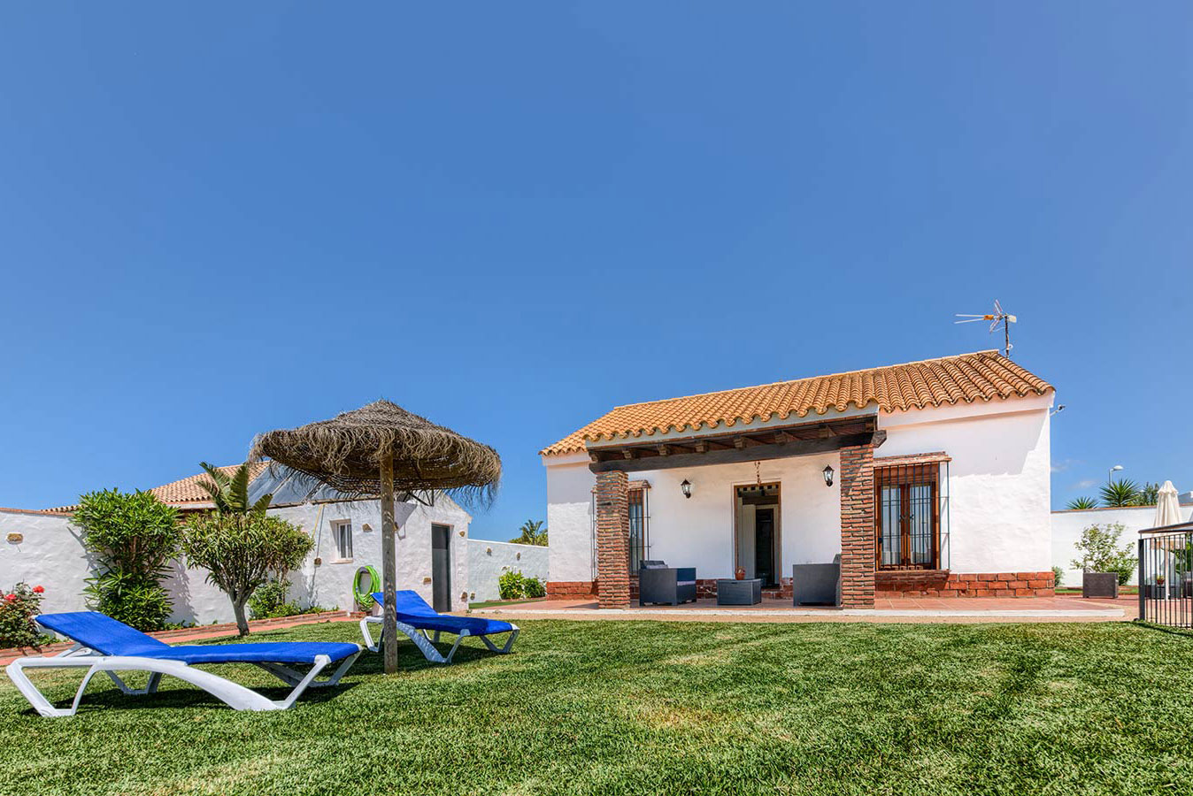 80 m2 großes Haus mit Kapazität für fünf bis sechs Personen, drei Schlafzimmern, komplettes Badezimmer, großes Wohn-/Esszimmer und Küche (mit Keramikkochfeld, Geschirrspülmaschine, Kühlschrank, Mikrowelle und Gebrauchsgegenständen für die Küche) Des Weiteren gibt es Satellitenfernsehen und kostenlosen WLAN-Internetzugang. Klimaanlage.