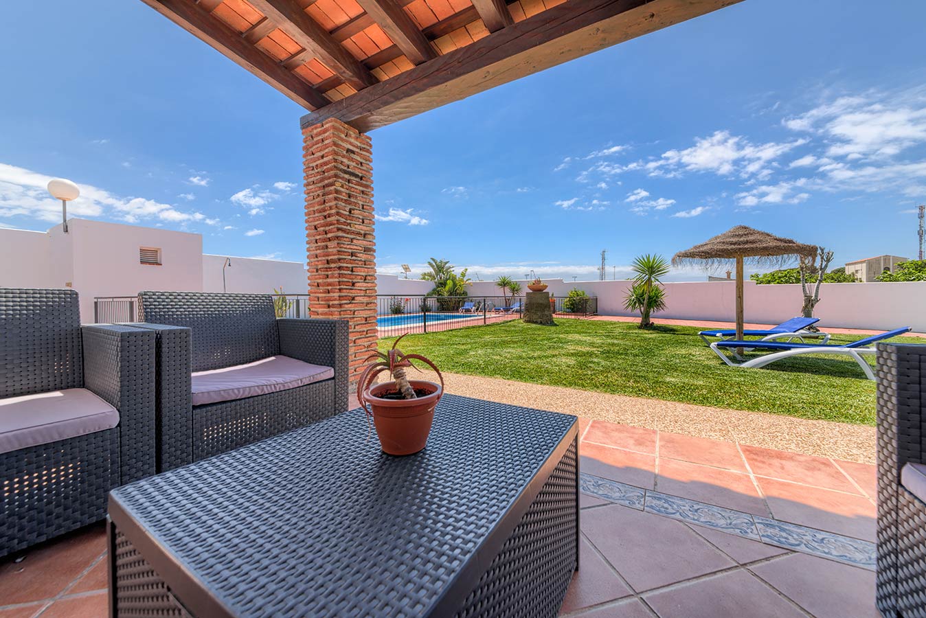 Es liegt in La Cañada del Rosal auf der Straße in Richtung Fuente del Gallo, ca. 1 km vom Ort und Strand entfernt. Es ist eine sehr ruhige Zone ohne Verkehr.
