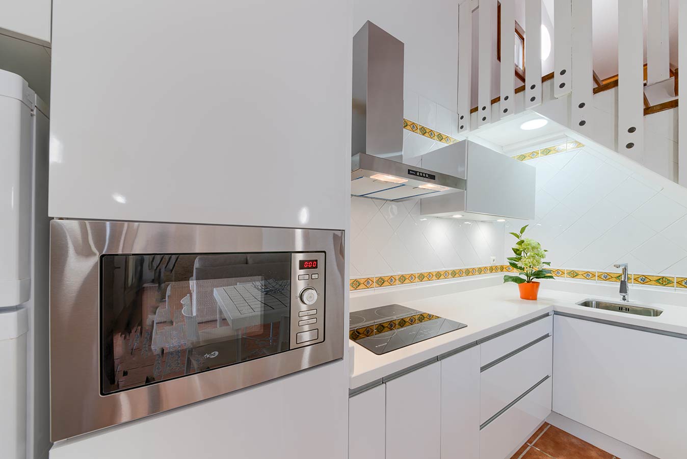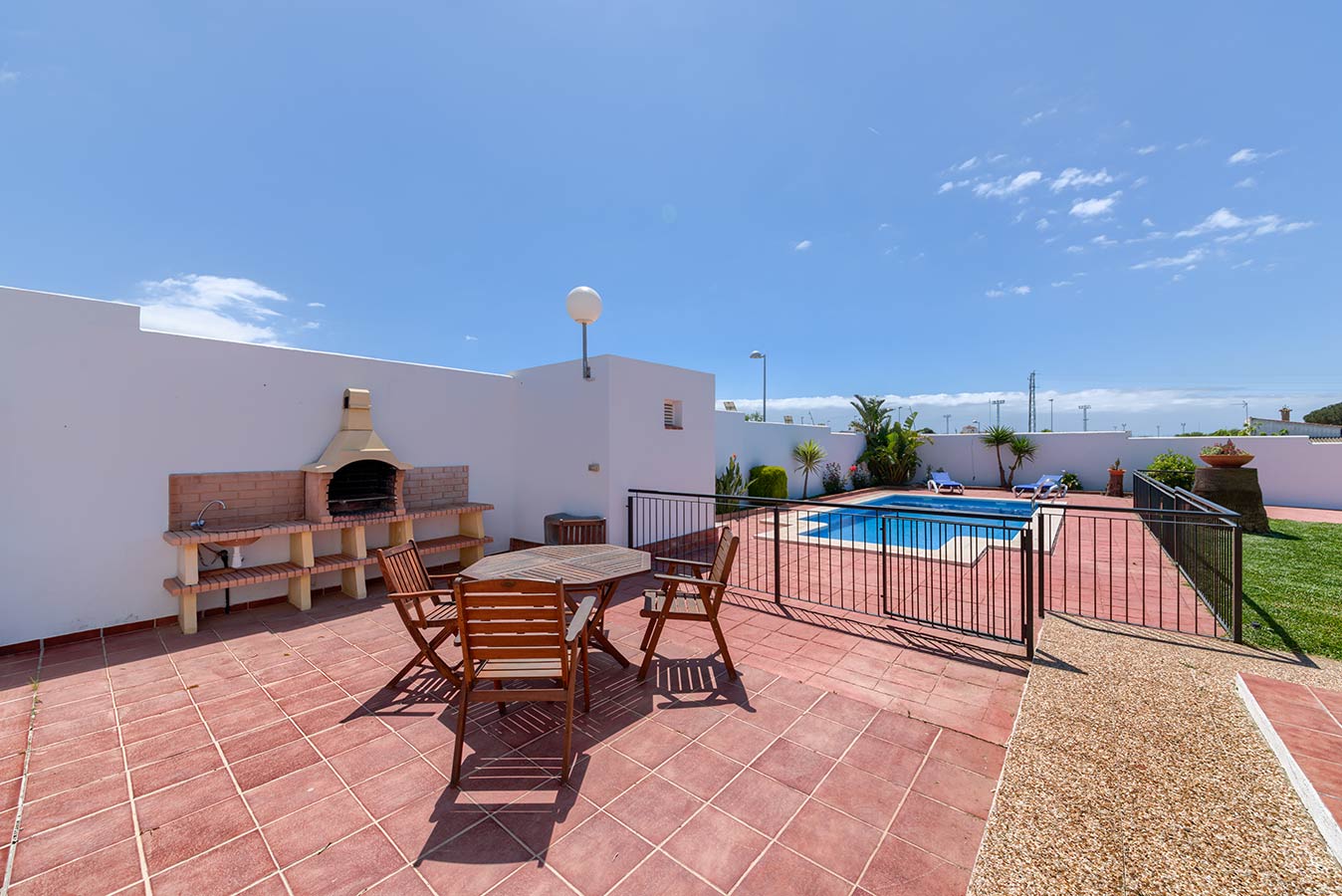 Das Haus befindet sich auf einem unabhängigen, 650 m2 großen Grundstück und bietet einen großen Garten, Veranda mit Gartenmöbeln, Sonnenliegen, Grill, Waschraum, Parkplatz und ein privates Schwimmbecken.