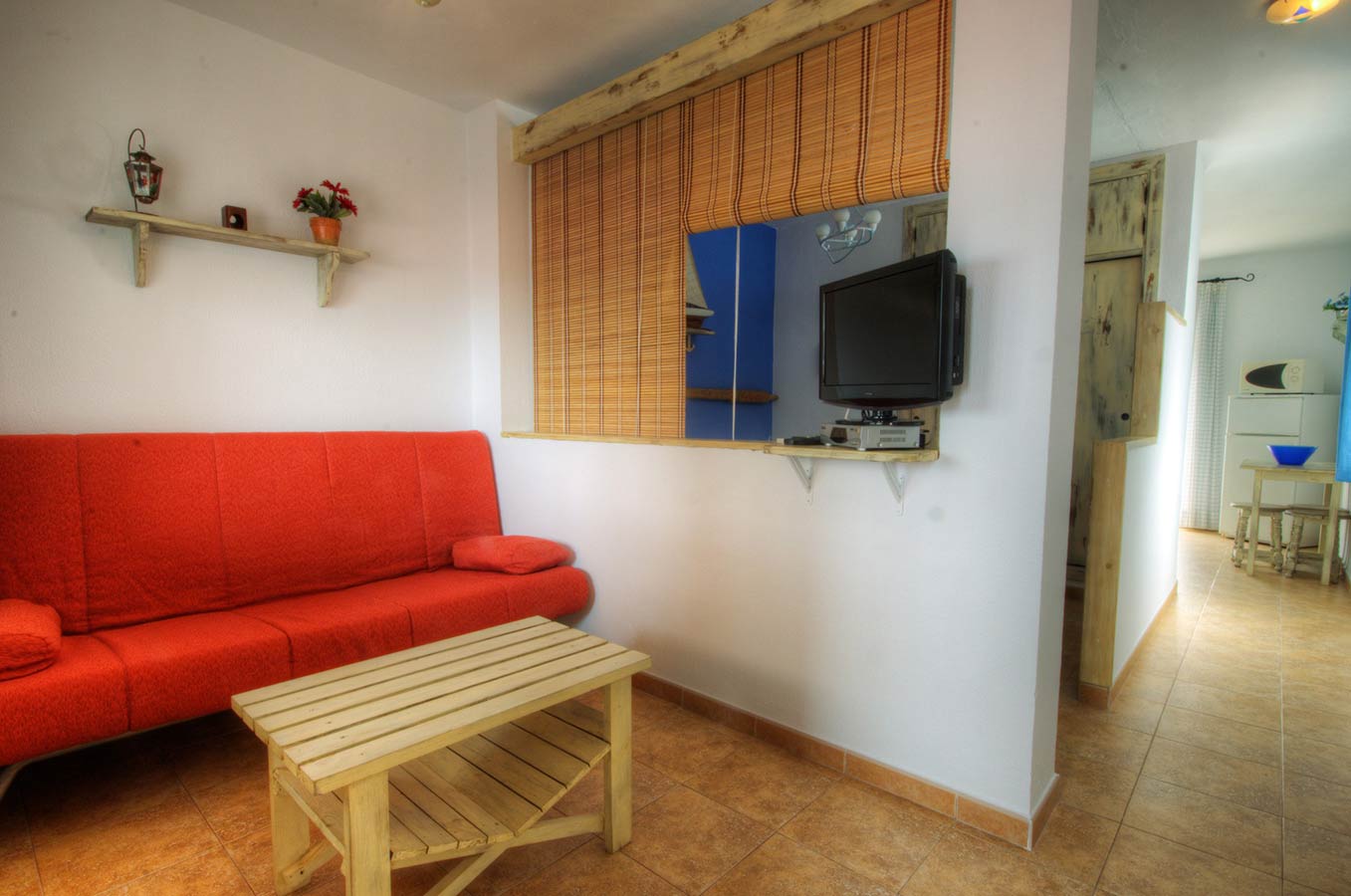 One bedroom with a double bed, a cosy sitting room with a sofa bed, bathroom with shower, TV, free Wi-Fi, air conditioning, kitchen equipped with a fridge, microwave and utensils and a balcony.
